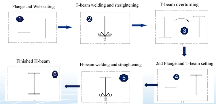 Sesetengah pelanggan mungkin perlu meningkatkan output pengeluaran, mereka memerlukan satu garisan kimpalan untuk terdiri daripada 2 set stesen kimpalan. Stesen kimpalan pertama untuk flange 1 dan web untuk membentuk rasuk t, yang ke-2 untuk kimpalan t-balok kimpalan dan flange ke-2 untuk membentuk rasuk h.